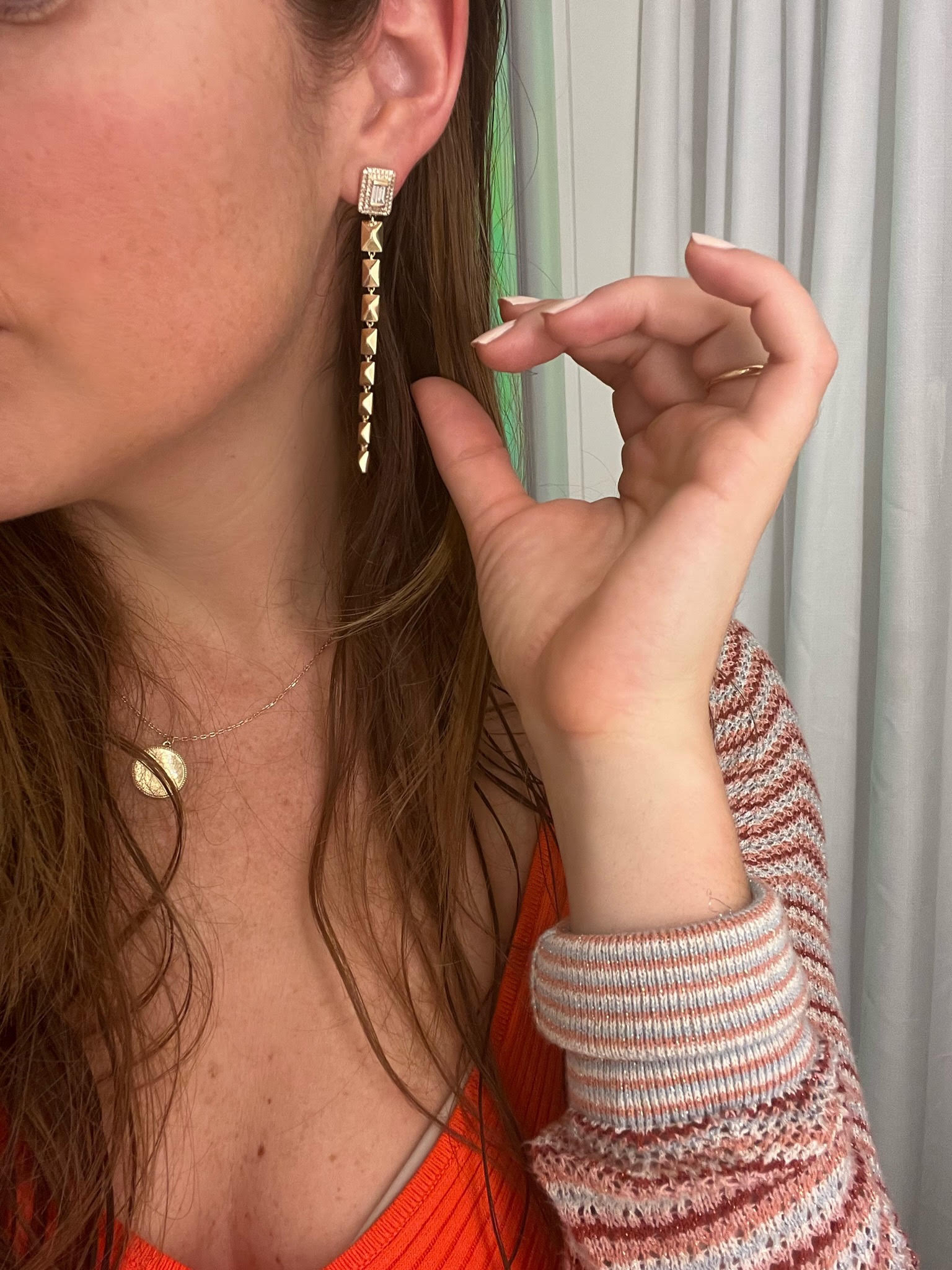 These earrings were created after I found myself needing a linear drop that wasn’t all diamonds but added something more to my looks. After years of pairing marquis diamonds in the perfect shapes and sizes I created an amazing pair of earrings, however, they were way too fancy to wear for dinners and nights out. That's when the need for the GG drops occurred. I sketched them out and could not be happier with the turn out.