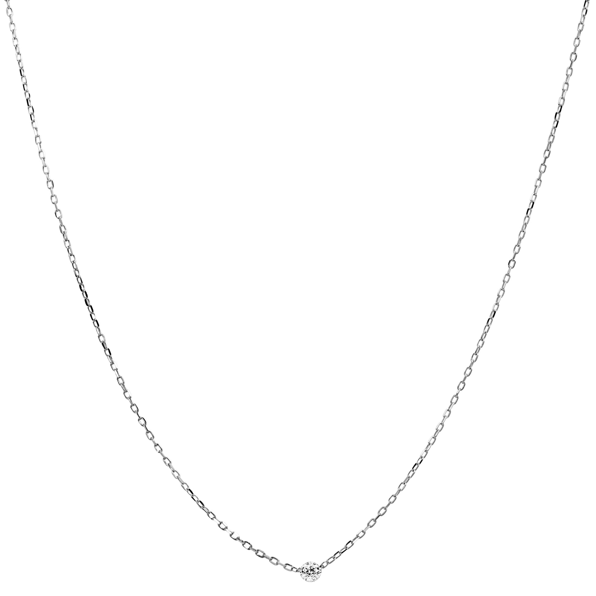 18K White Gold Single Diamond Drop Necklace