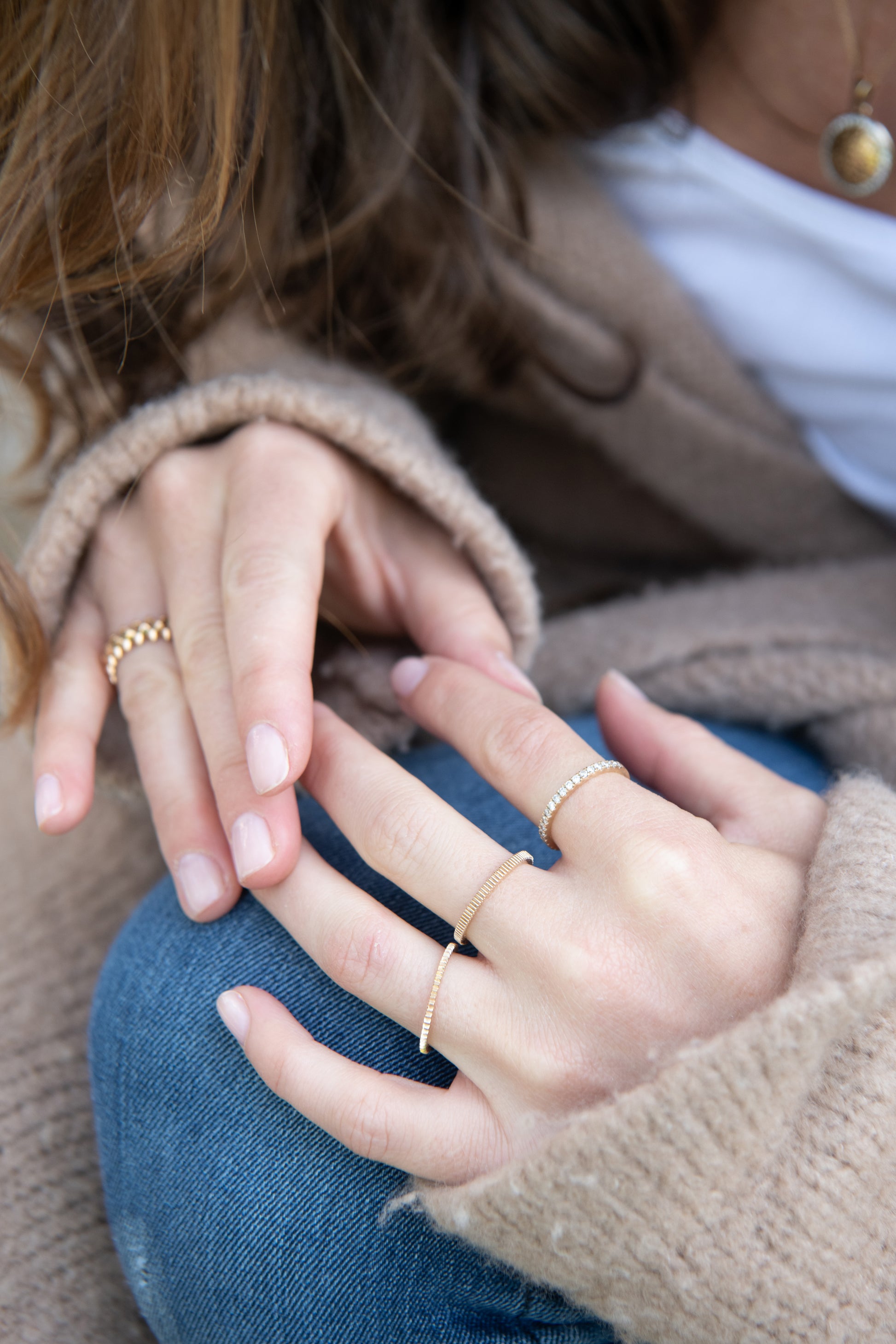 A classic concept refreshed, this 14K Yellow Gold ring features a striking Diamond arrangement. Versatile, wear on its own, or stack with other pieces in your collection.