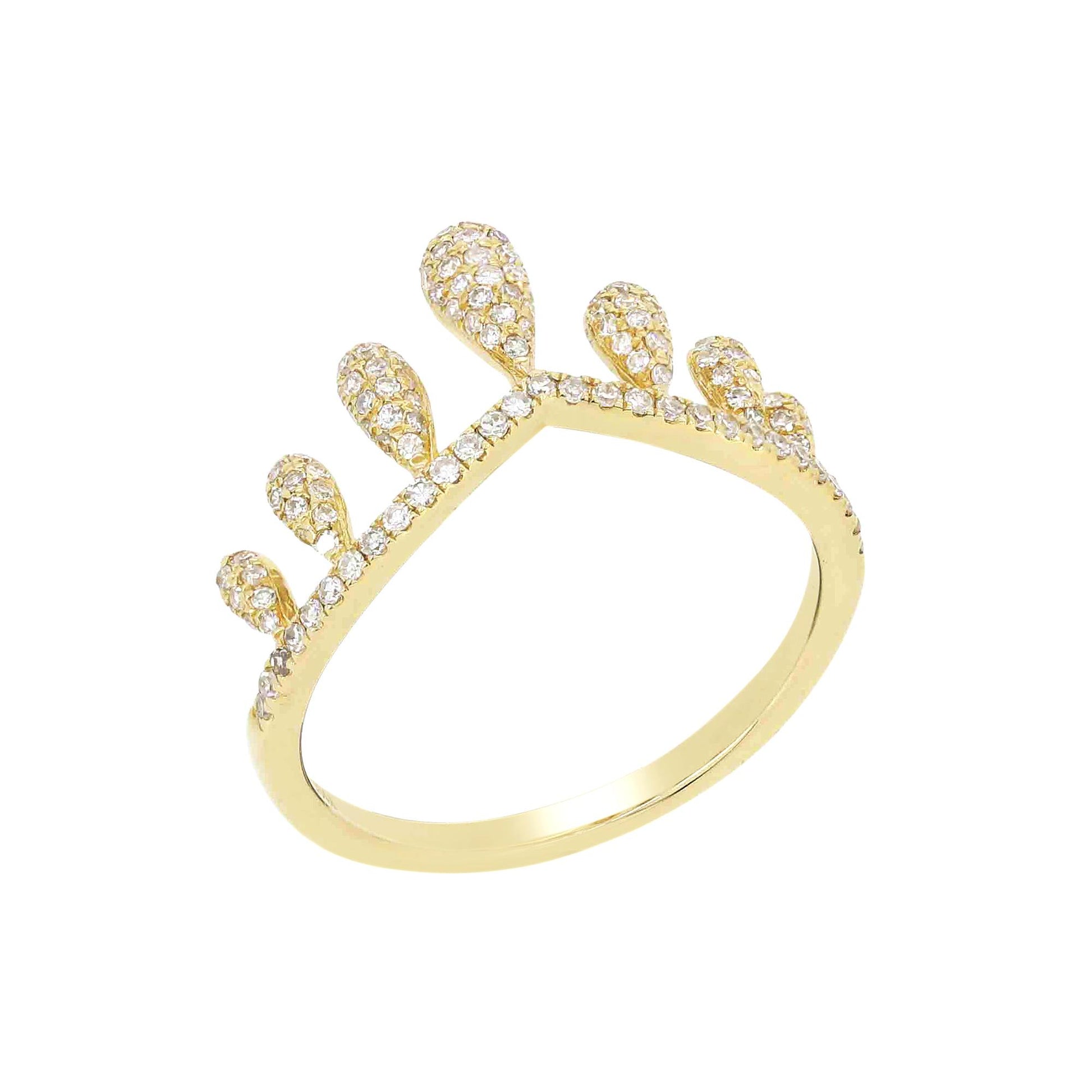 Diamond 14K Yellow Gold Teardrop Crown Ring