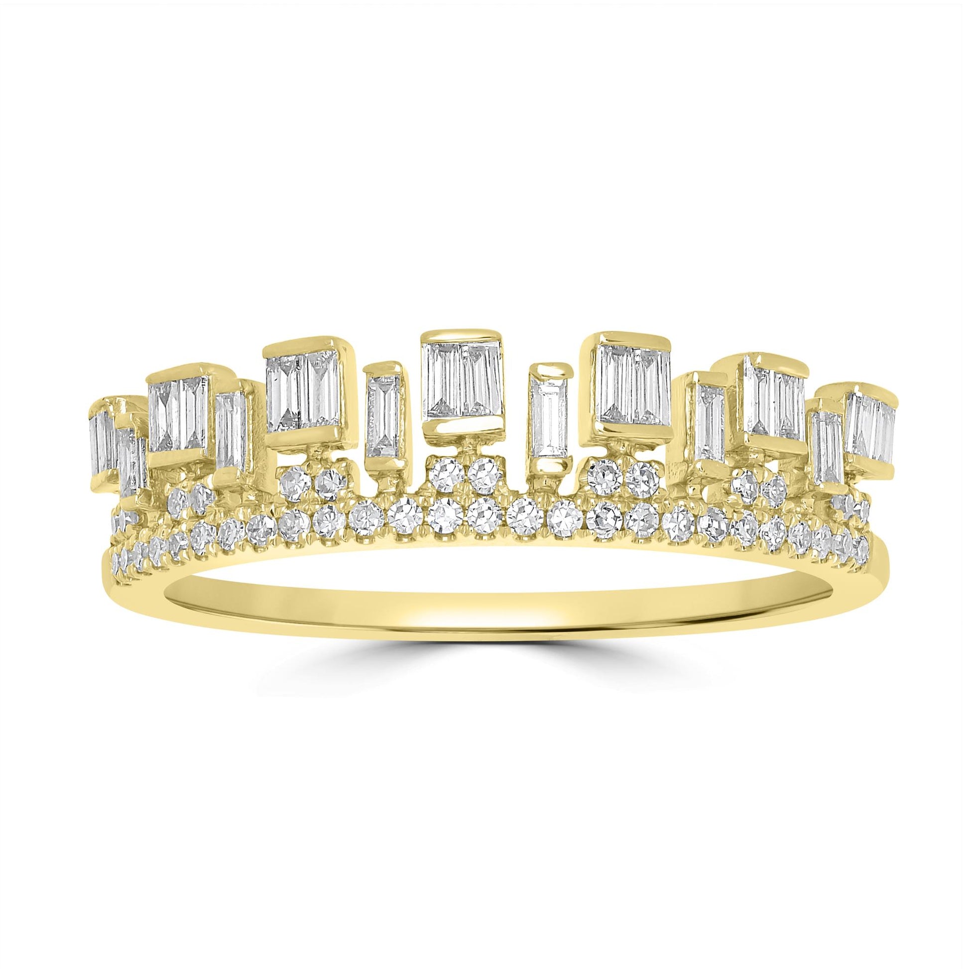 14K Yellow Gold Staggered Diamond Crown Ring