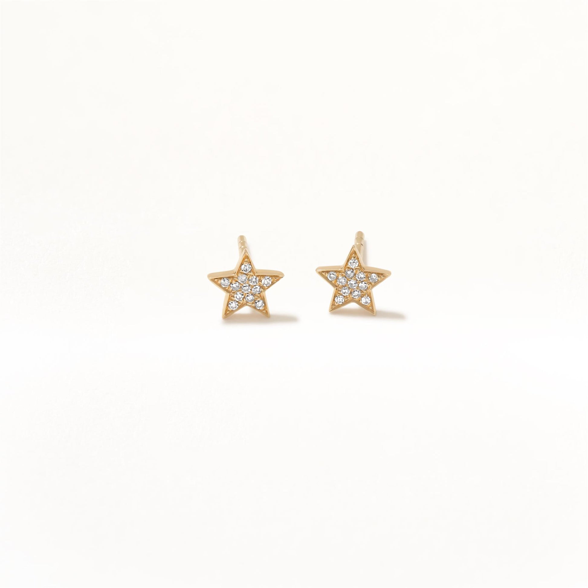 14K Yellow Gold Dainty Diamond Star Stud Earrings