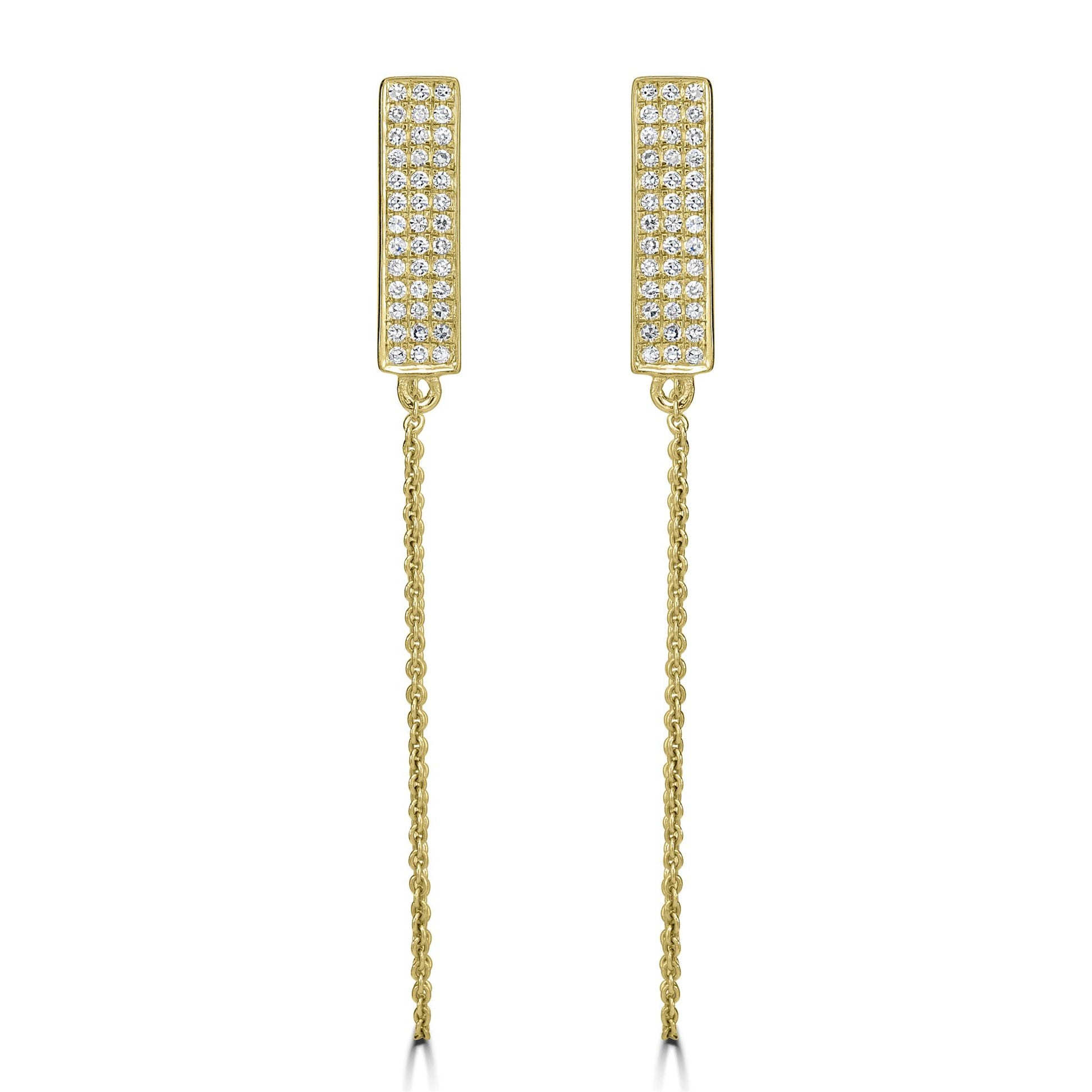 These 14K Yellow Gold earrings gracefully dangle from Diamond adorned studs. Sophisticated and fun, wear whenever, wherever.