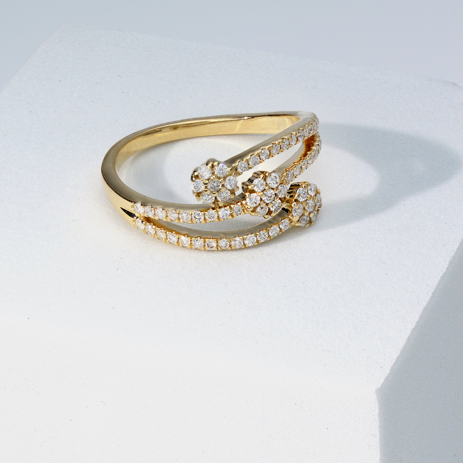 This sophisticated 14K Yellow Gold Wrap ring features a distinct band with intricate Diamond arrangement. Versatile, this piece can be worn with any ensemble.