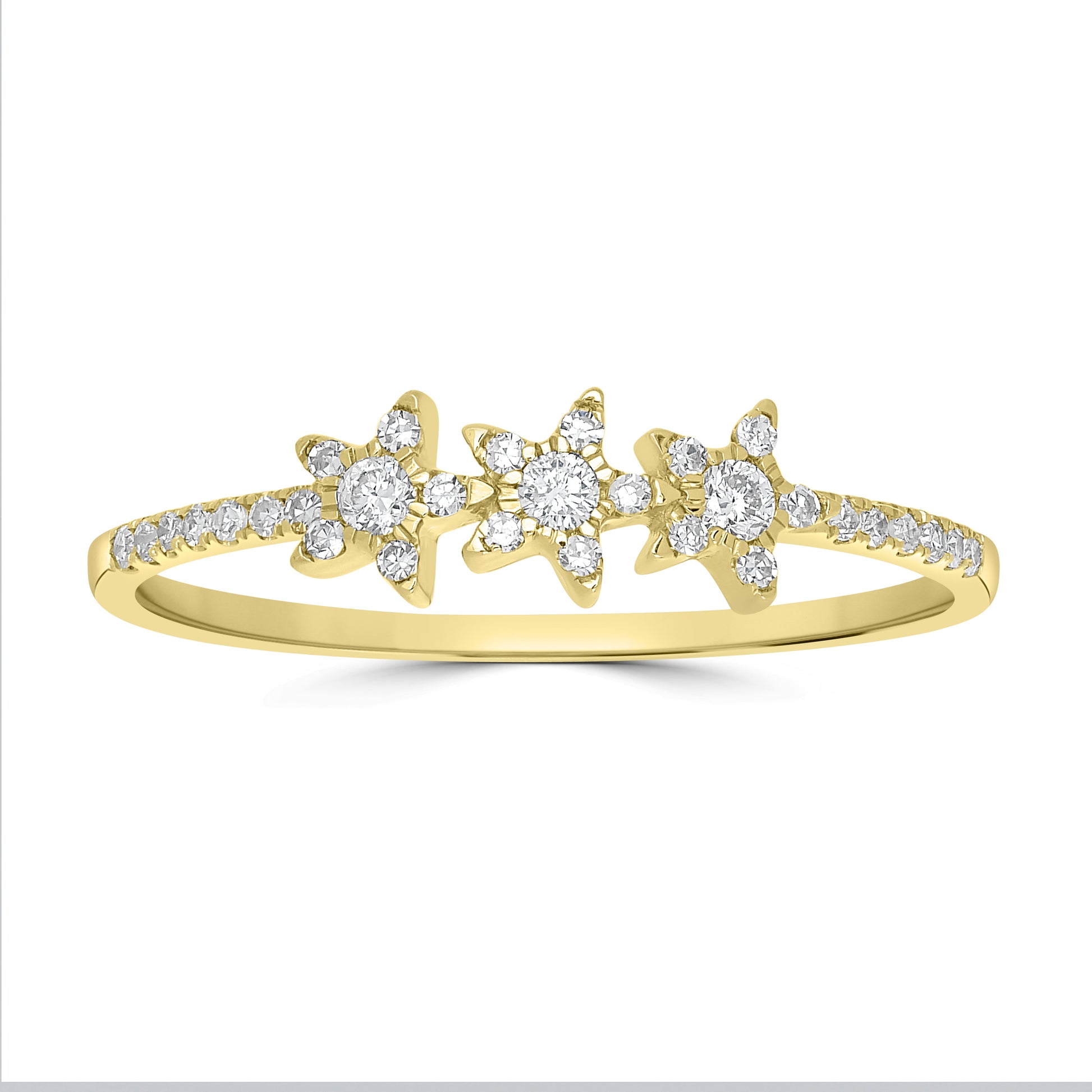 A classic concept refreshed, this 14K Yellow Gold ring features a striking arrangement of Diamond adorned stars. Versatile, the piece can be worn on its own for a bold look or complemented by other rings in your collection.