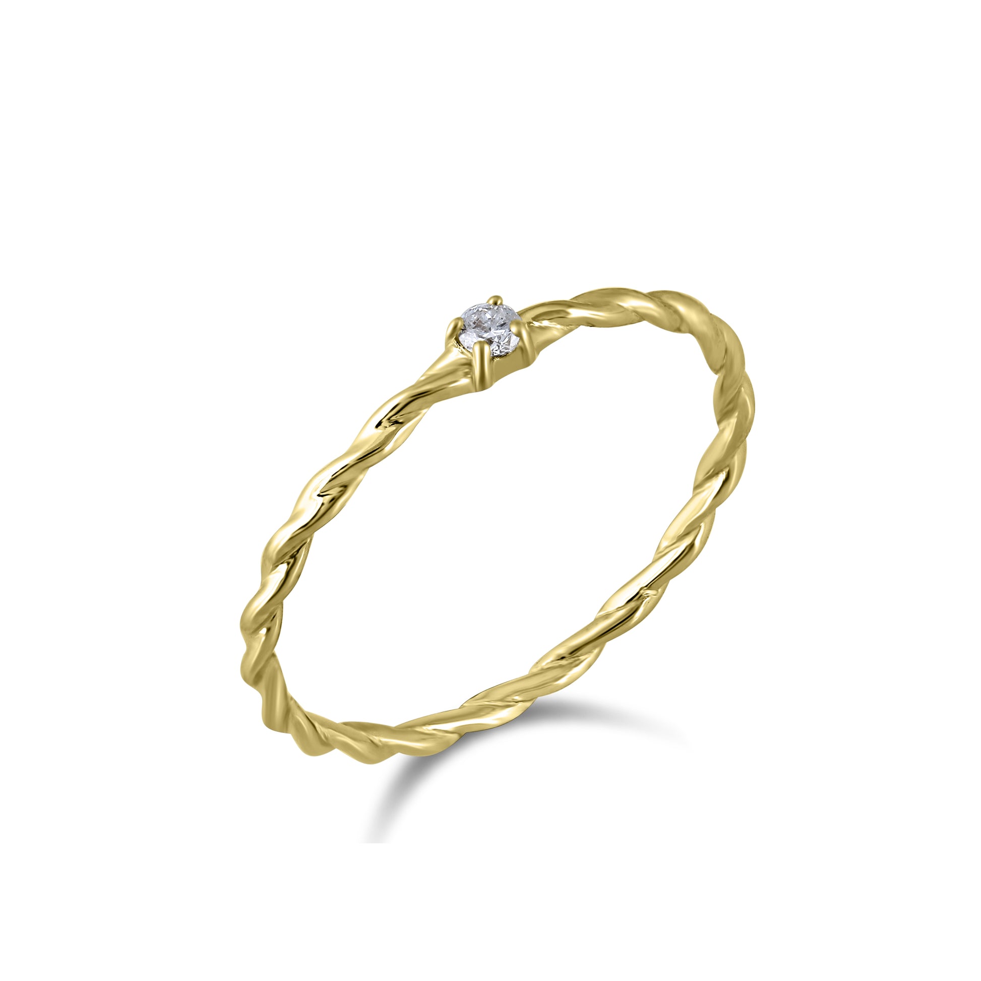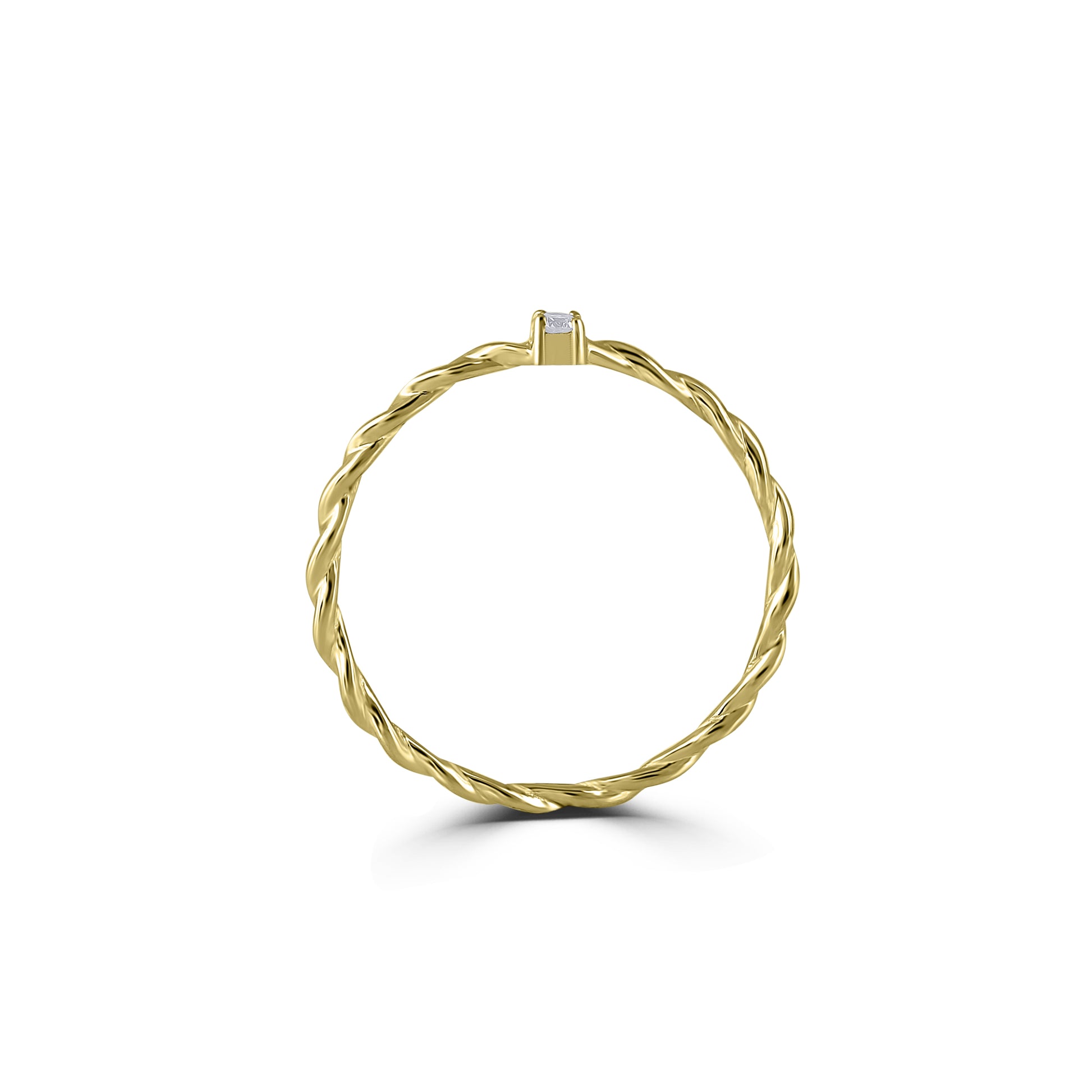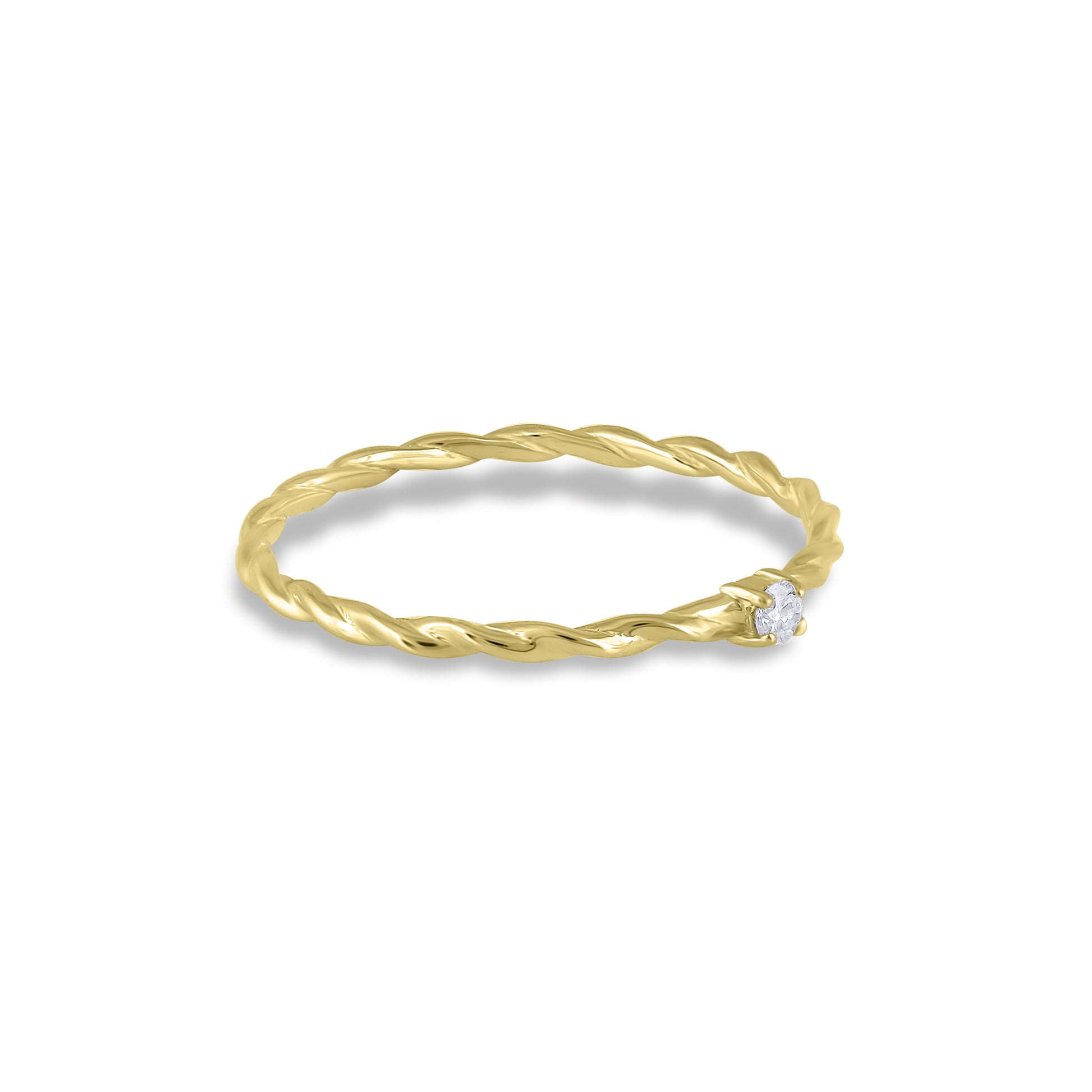 A classic concept refreshed, this 14K Yellow Gold ring features a single Diamond complemented by a twisted band. Versatile, wear on its own, or stack with other pieces in your collection.