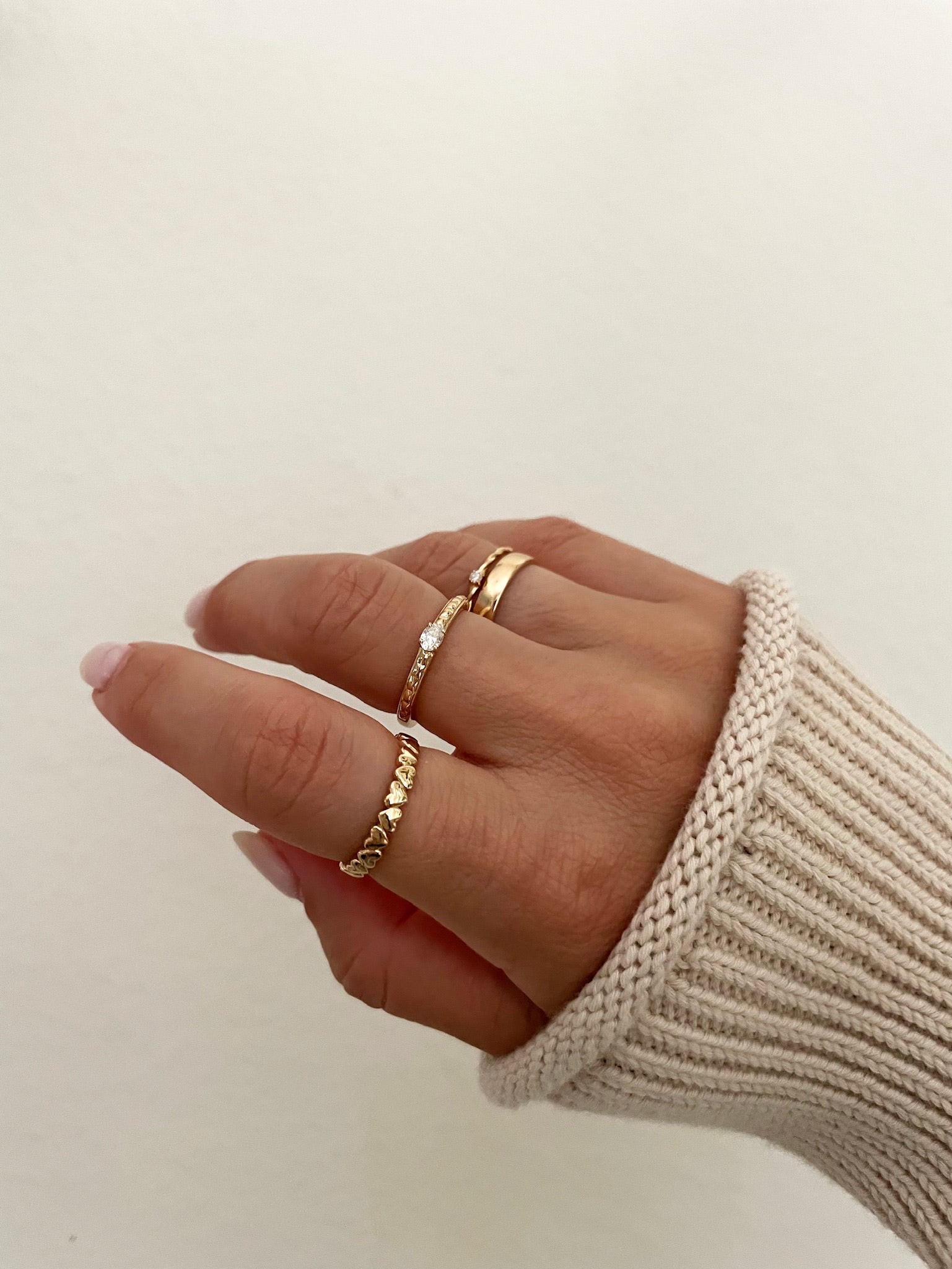 A classic concept refreshed, this 14K Yellow Gold ring features hearts in an alternating pattern. Versatile, wear with any ensemble.