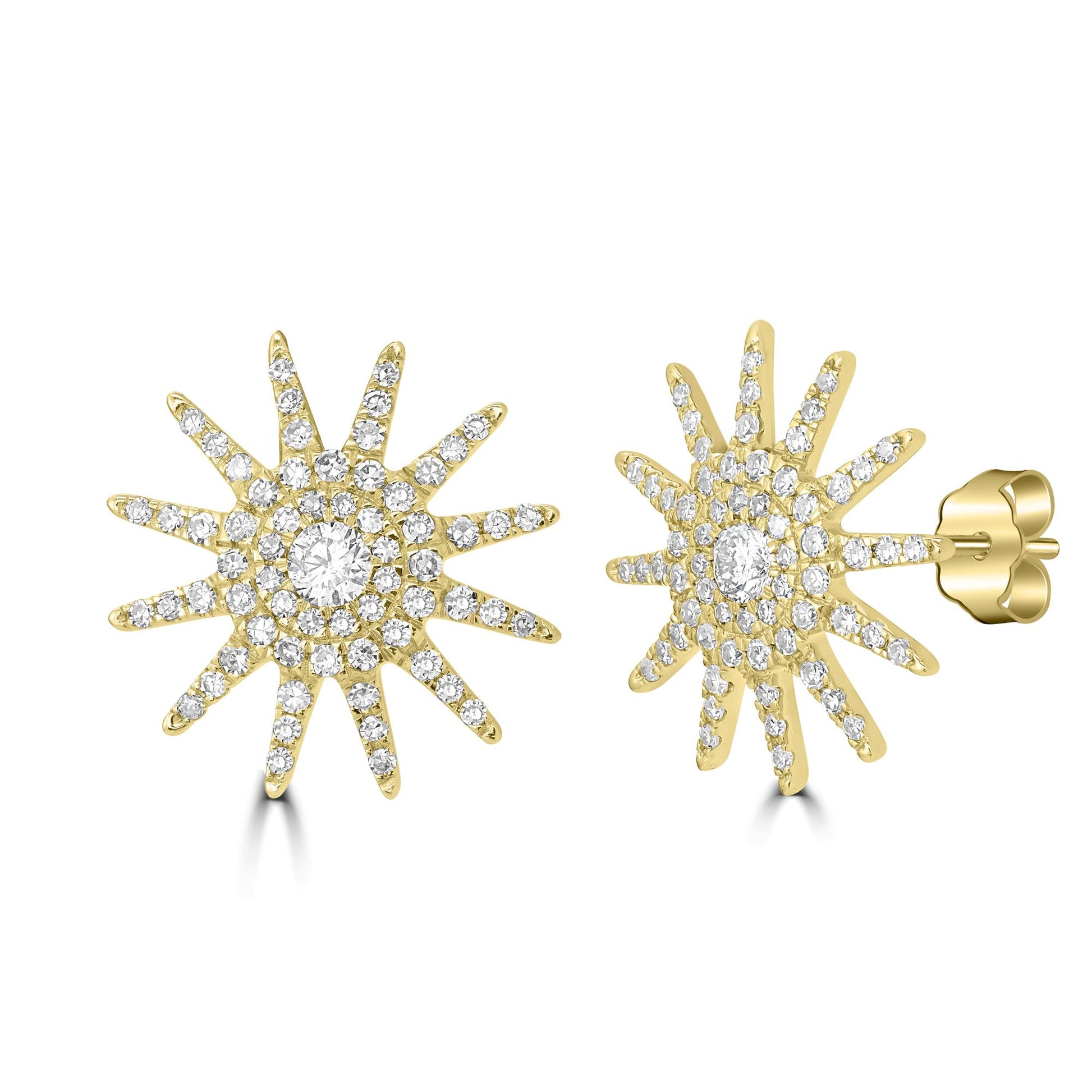 Made out of 14K Yellow Gold and adorned with Diamonds, shine on with these bold Stardust Stud Earrings. Versatile, wear with any ensemble.