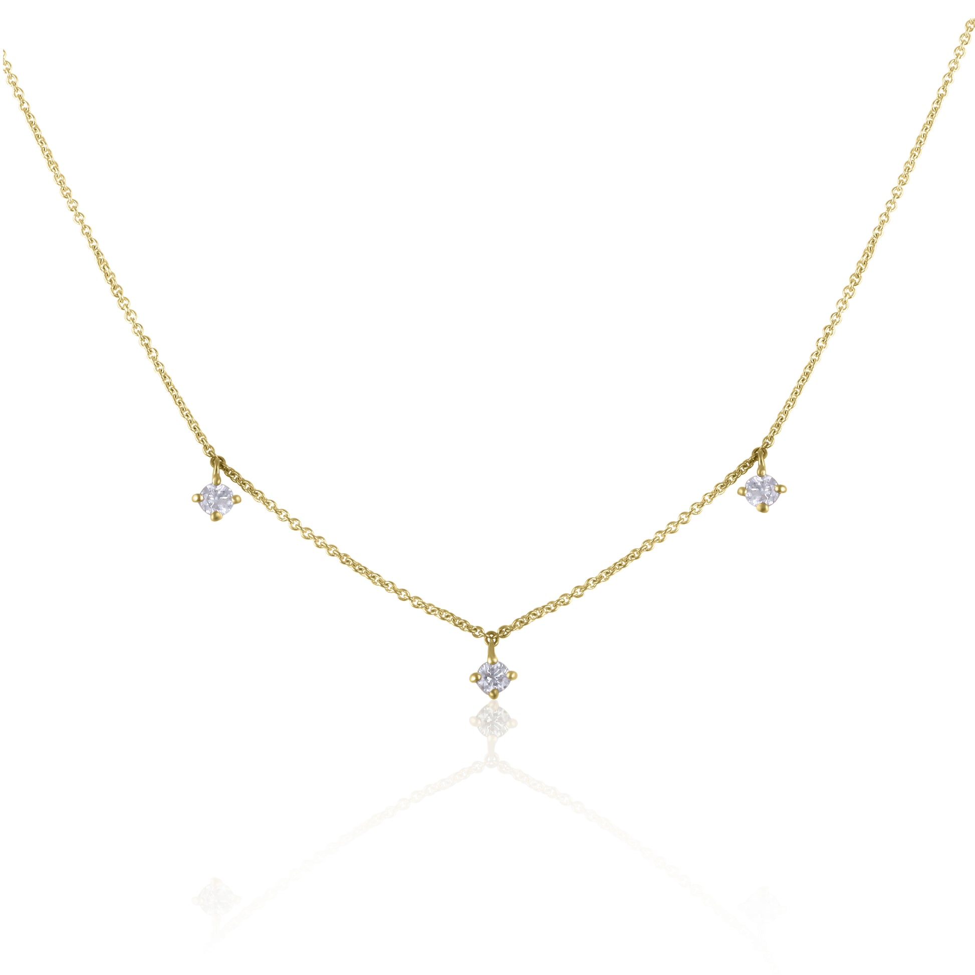 Elegant and refined, this 14K Yellow Gold necklace simply stuns with its 3 round cut Diamonds. Make it a part of your collection today.