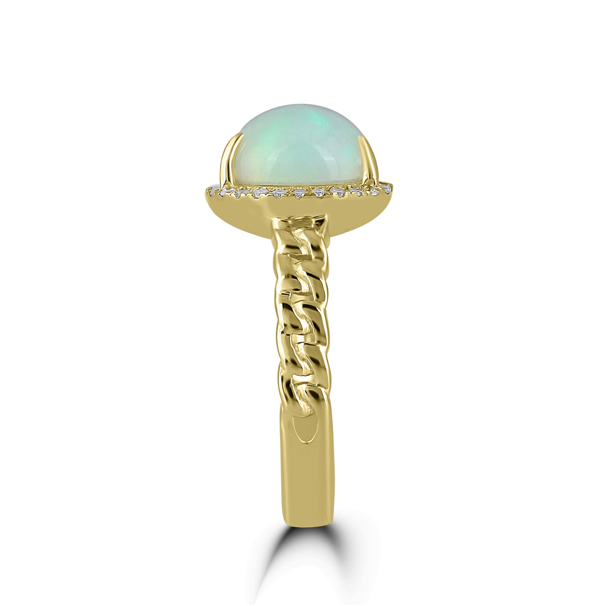 Metal: 14K Yellow GoldStone: Ethiopian Opal, Diamond