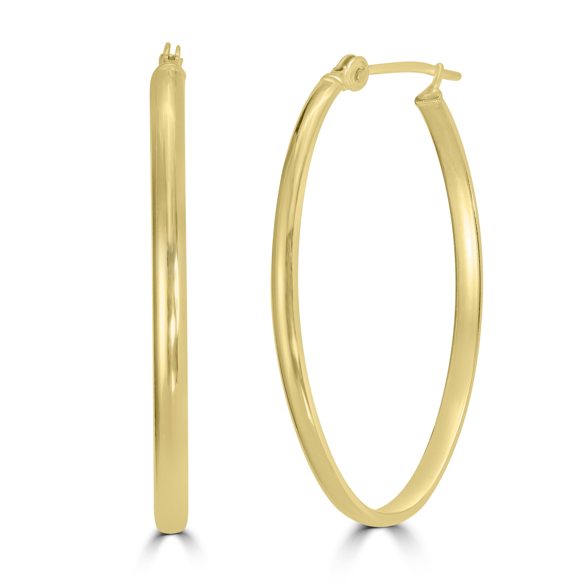 14K Yellow Gold High Polished 25 MM Diameter Oval Hoop