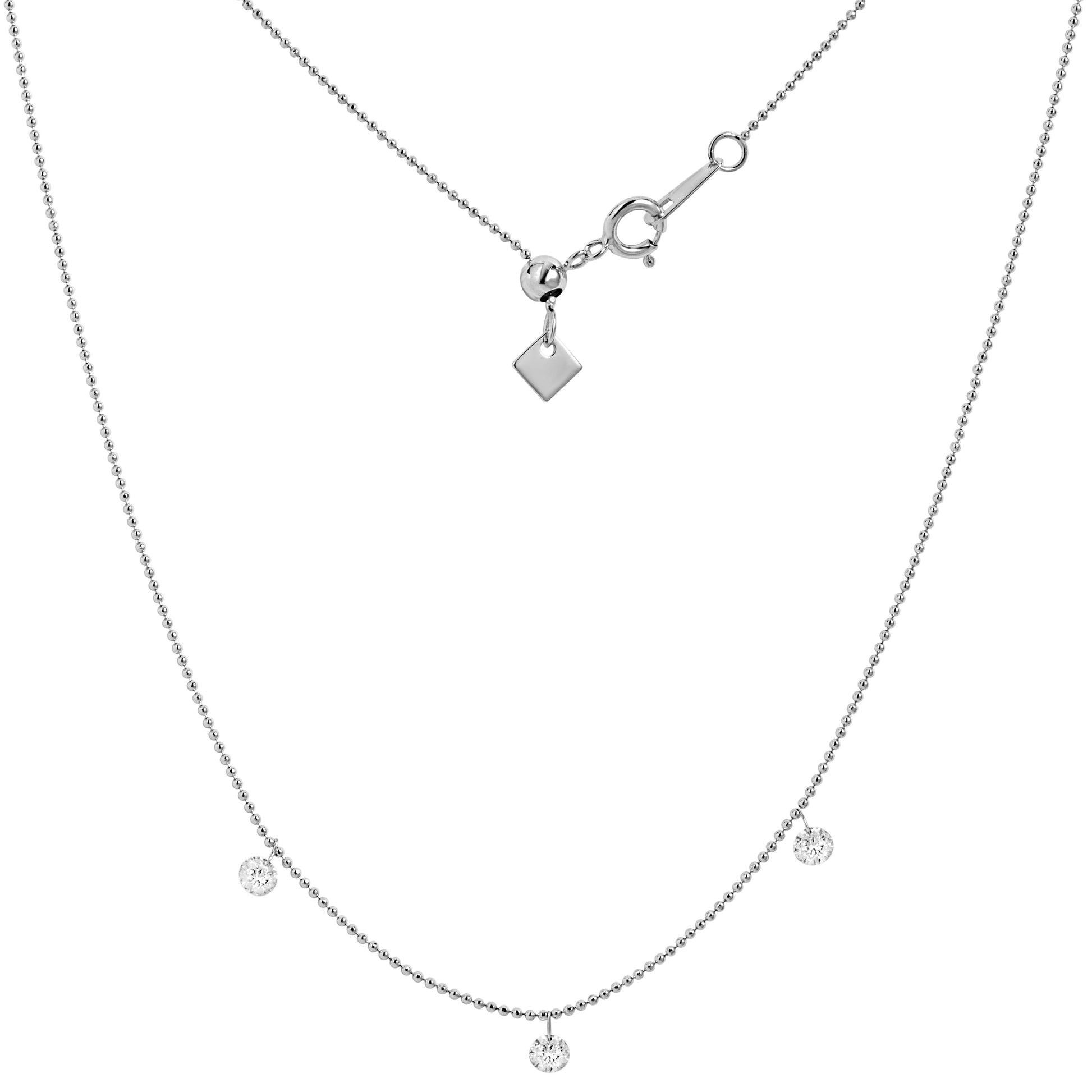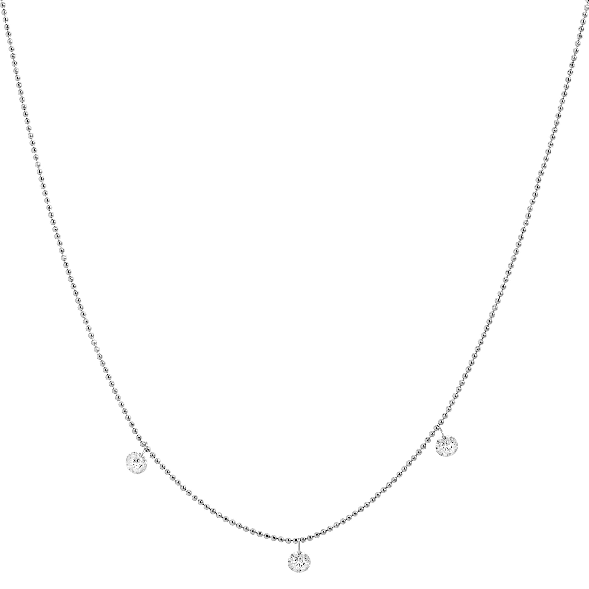 18K White Gold Beaded Three Diamond Necklace