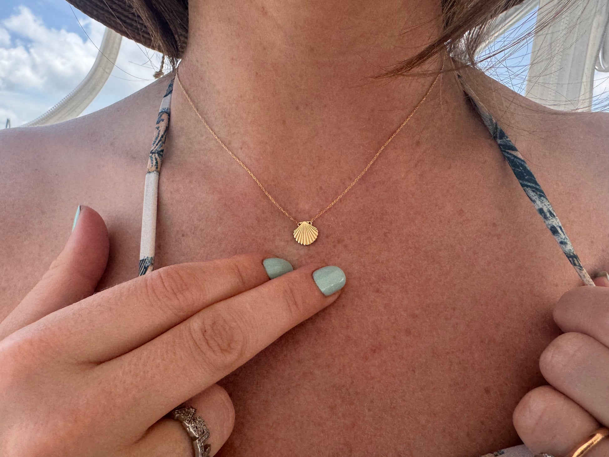 14kt gold shell necklace and a perfect little addition to any neckline.