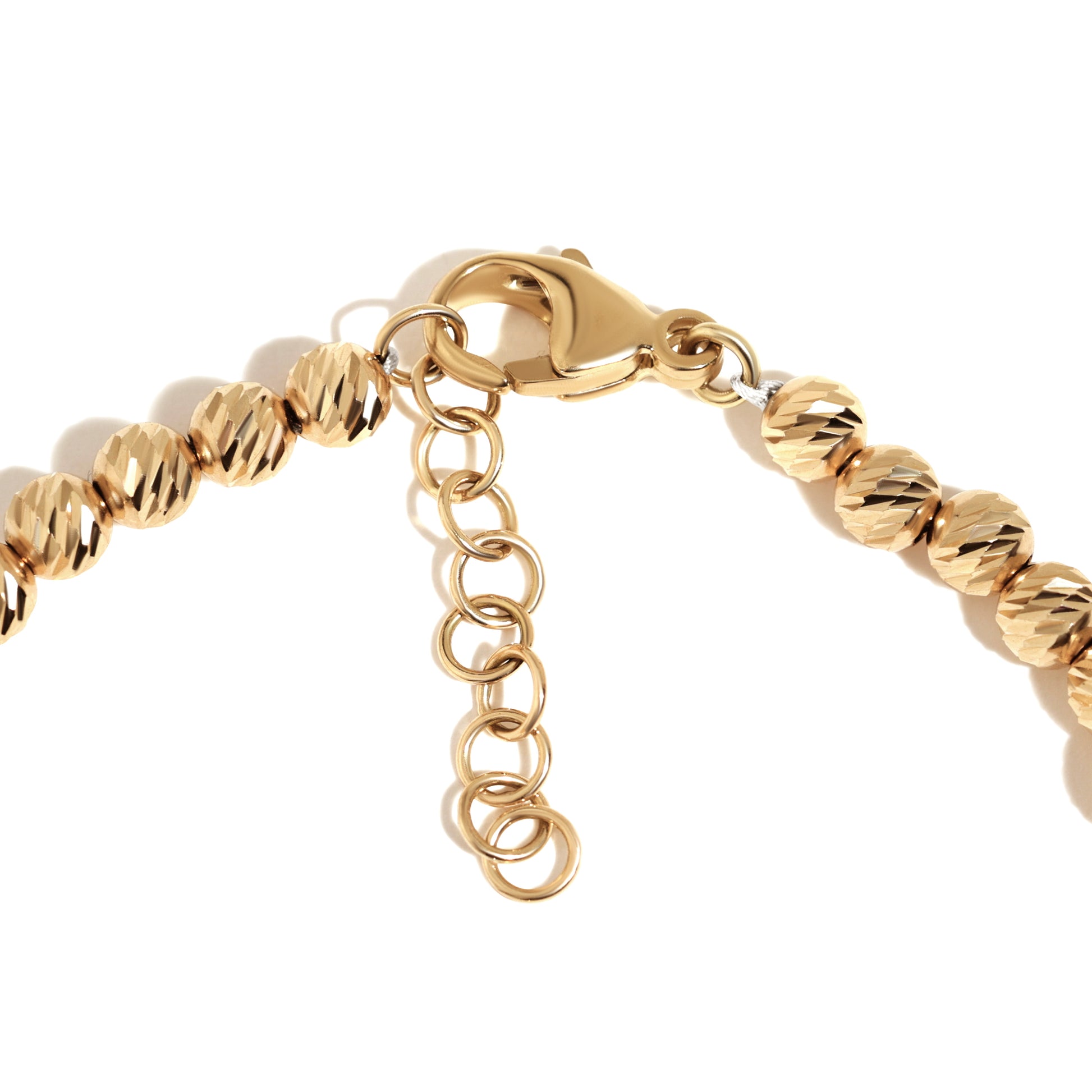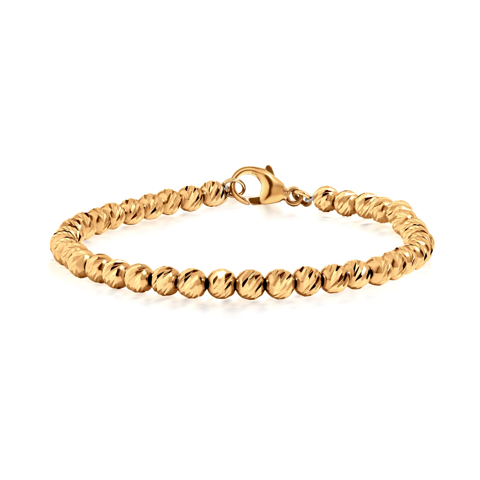 A classic concept refreshed, this bracelet features a stunning collection of 14K Yellow Gold beads with a diamond cut finish. This piece can be worn on its own for a bold look or stacked with bracelets in your collection.
