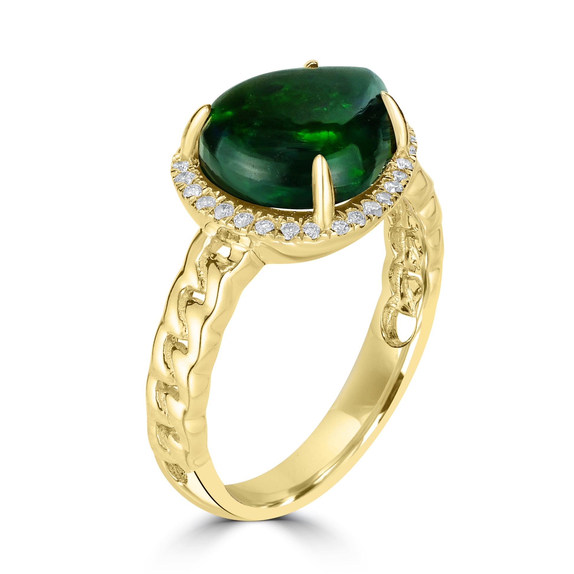 Metal: 14K Yellow GoldStone: Black Opal, Diamond