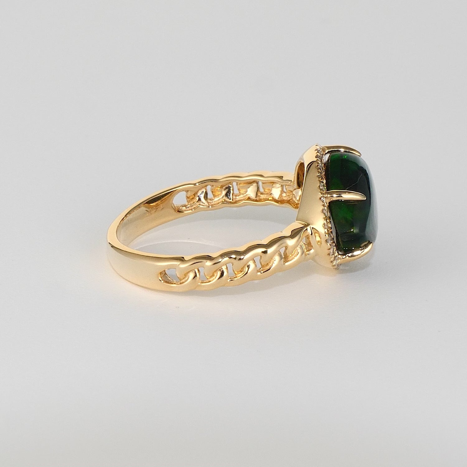 Total Stone Weight: Black Opal: 2.15 CT | Diamond: 0.15 CT