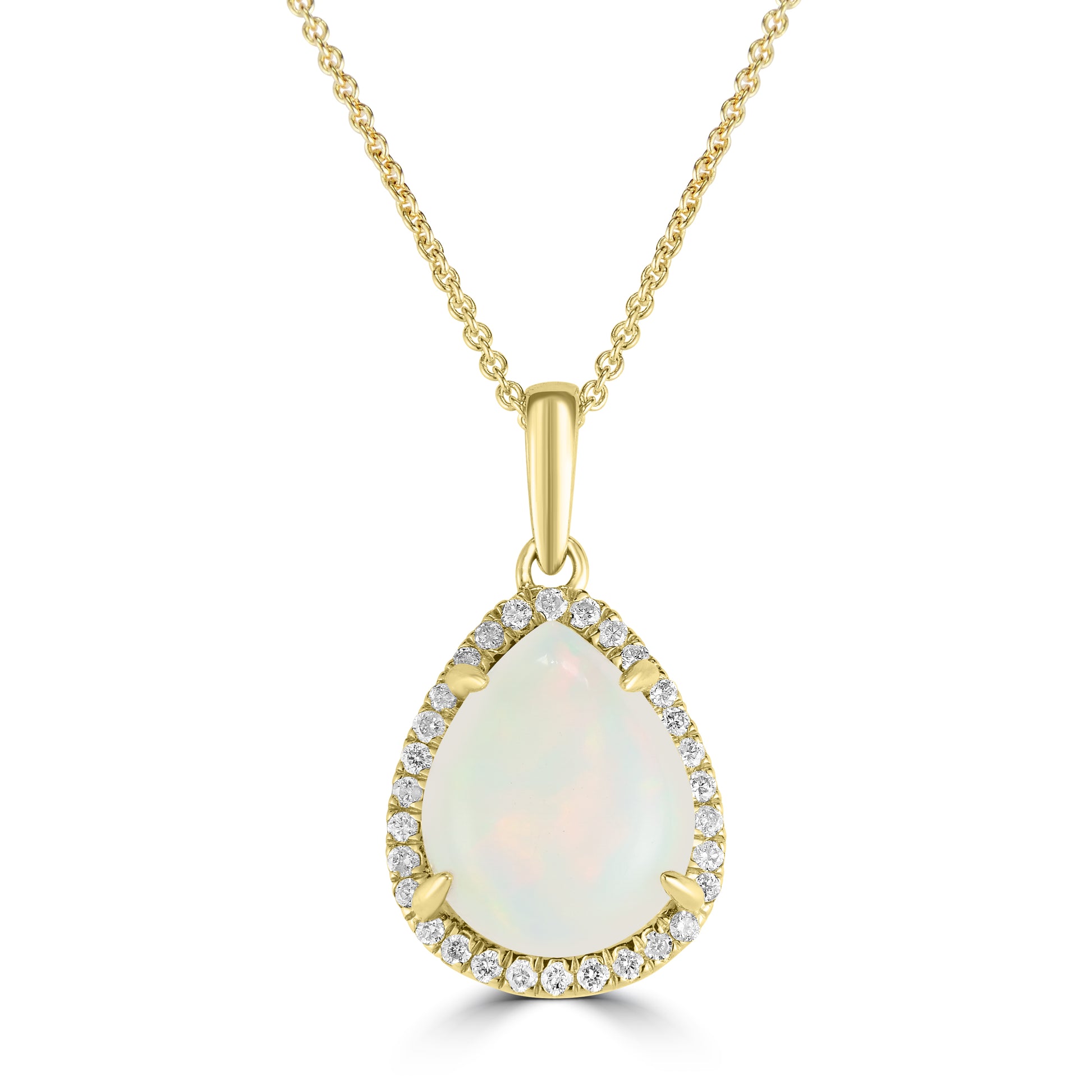 14K Yellow Gold Kimmie Opal Necklace with Diamond Halo Setting