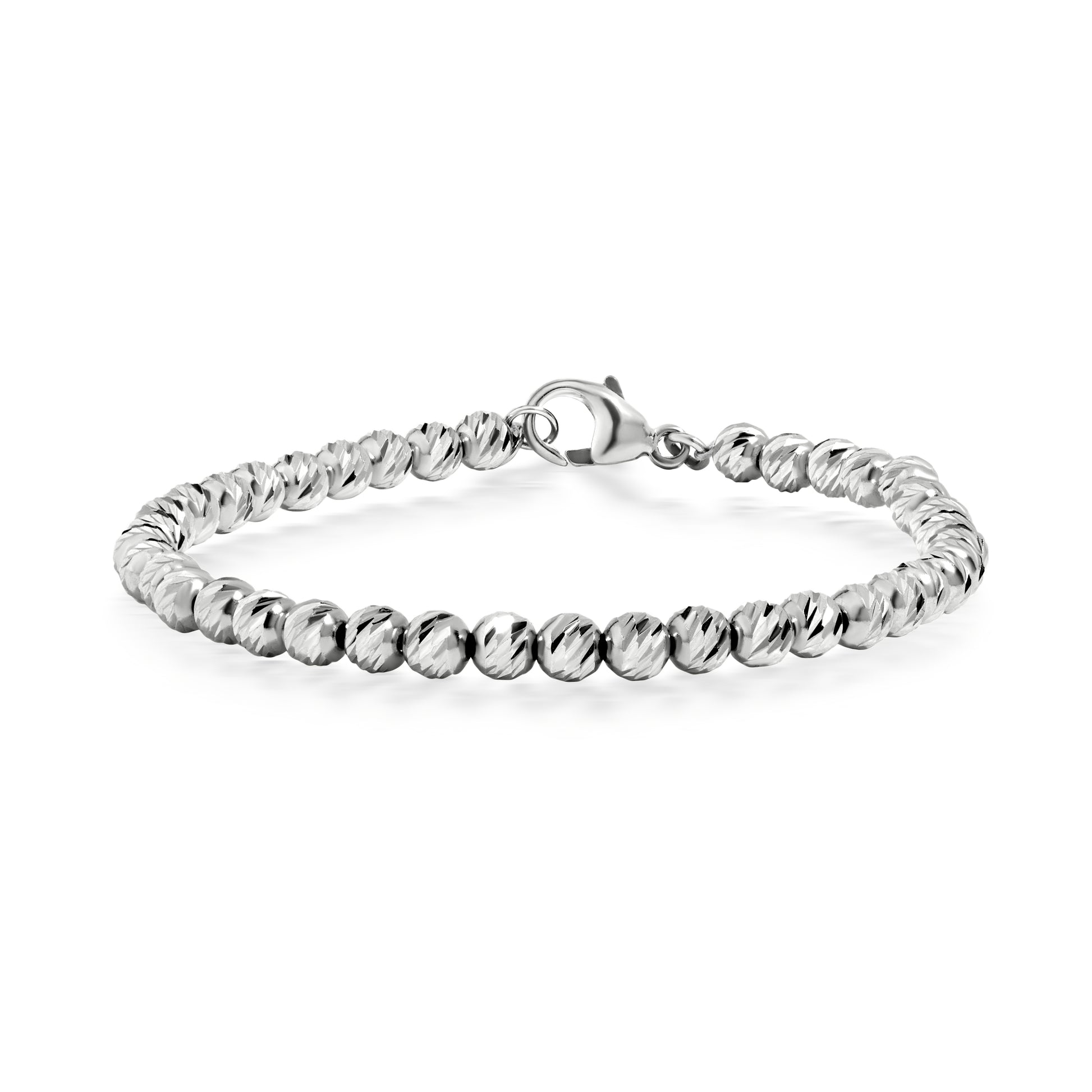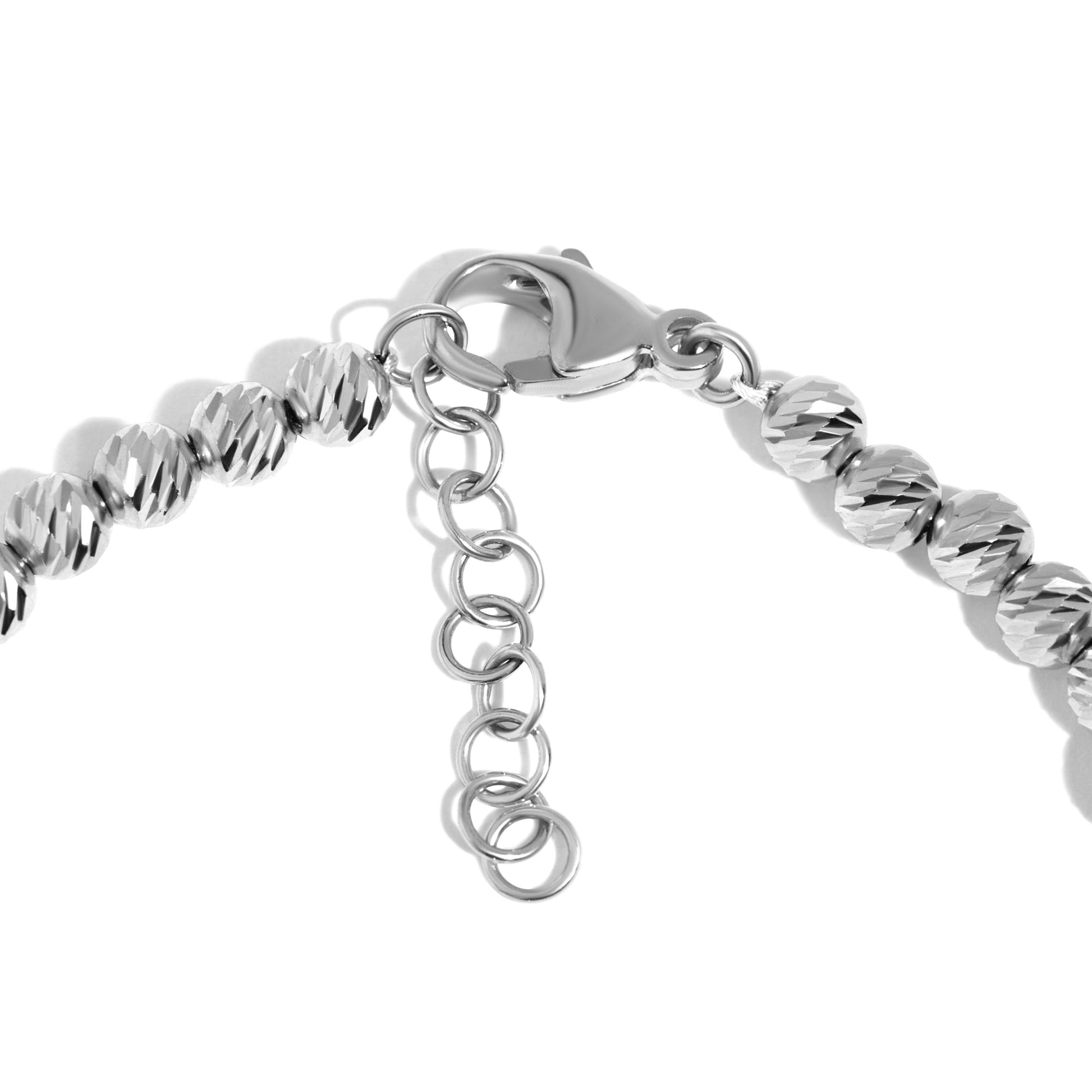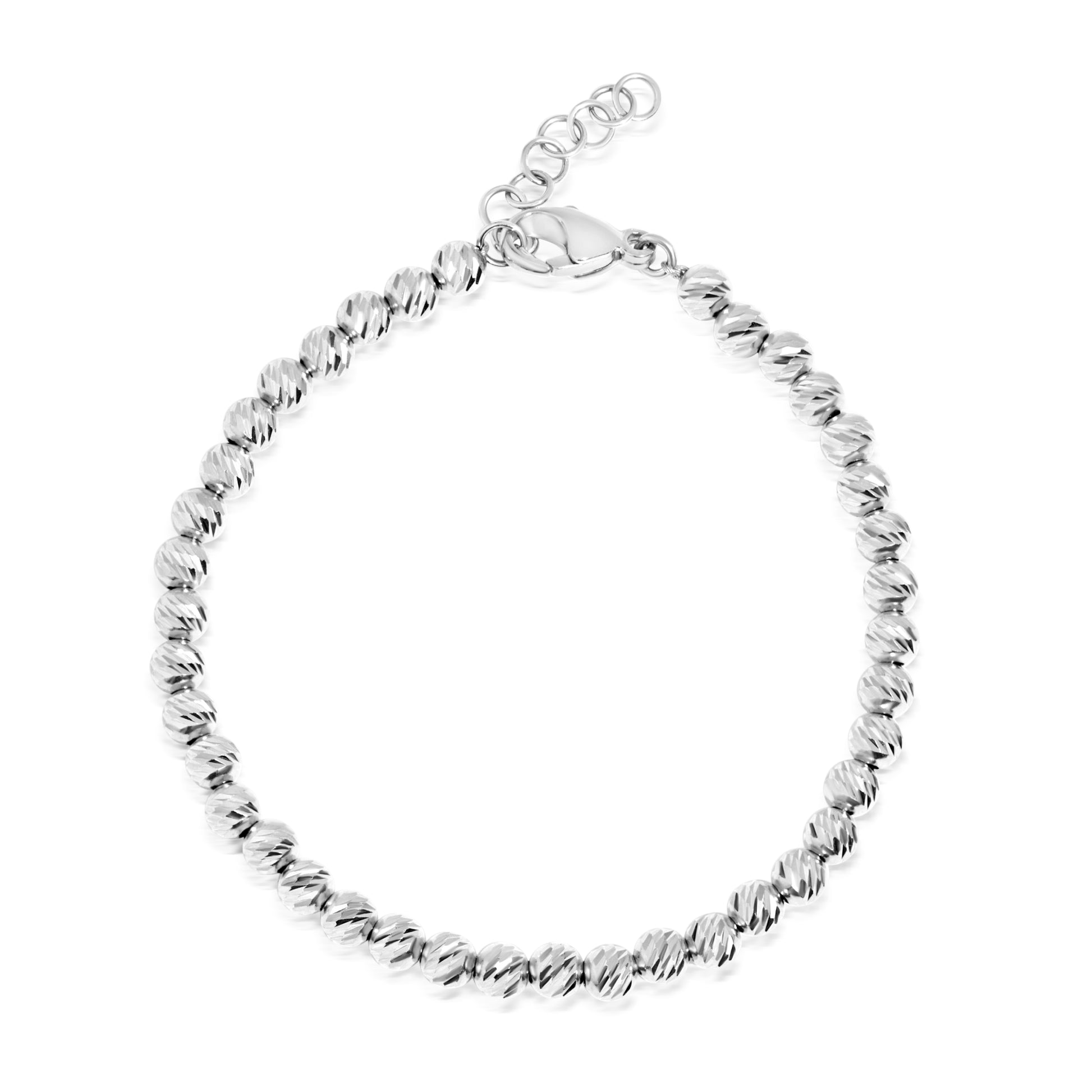 A classic concept refreshed, this bracelet features a stunning collection 14K White Gold beads with a diamond cut finish. This piece can be worn on its own for a bold look or stacked with others in your collection.