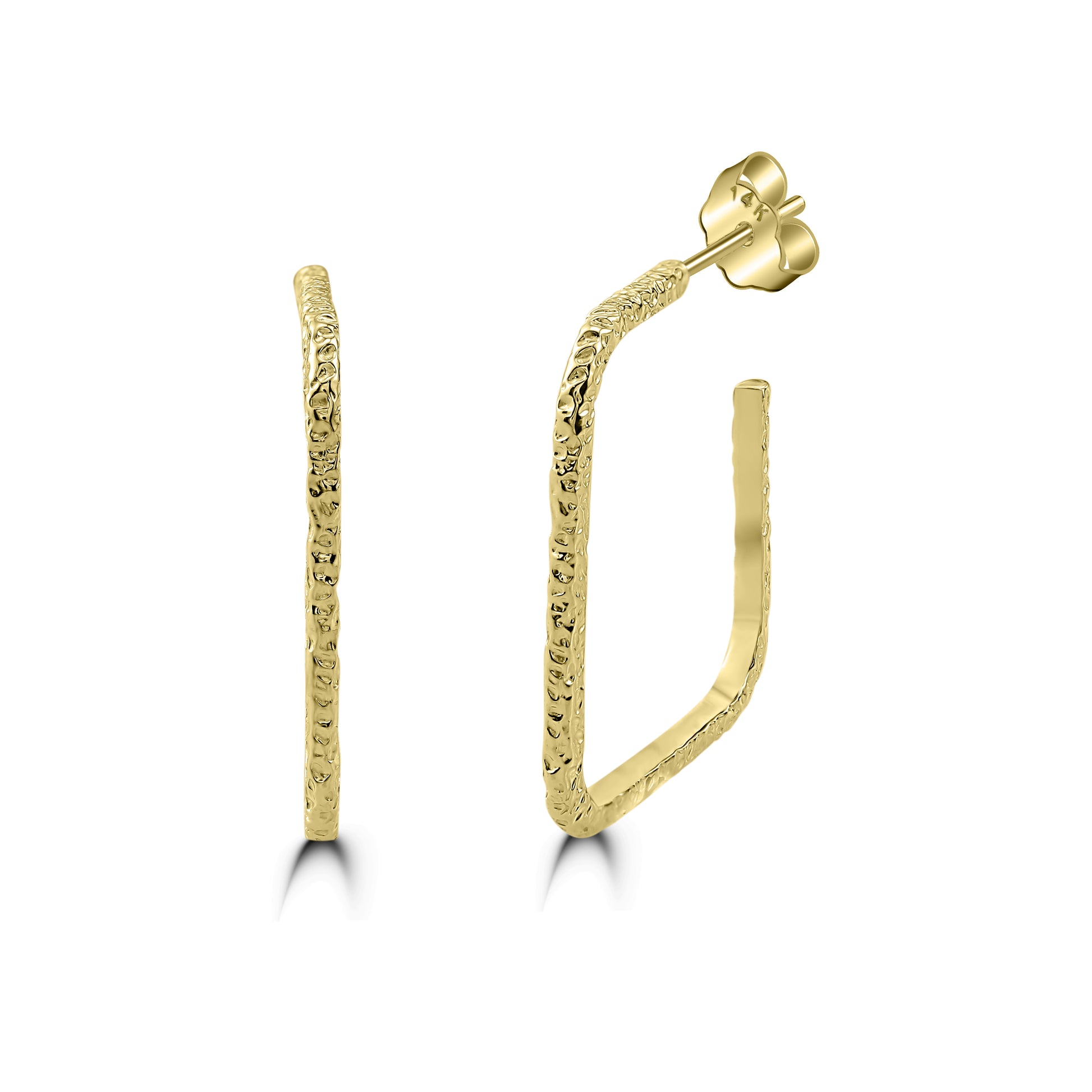 These captivating rectangle hoop earrings are crafted from Yellow Gold and accented with a hammered texture. Versatile, wear with any ensemble.