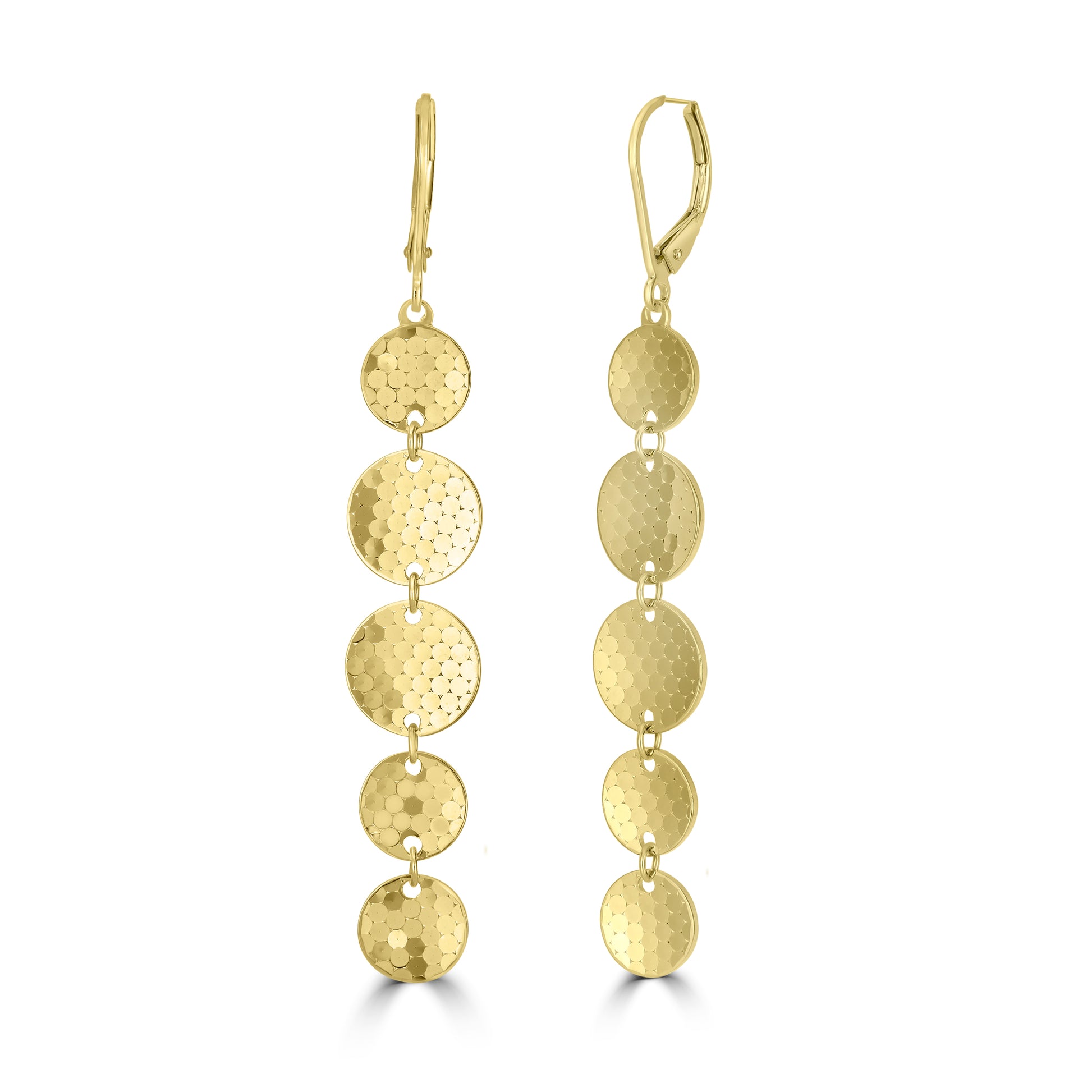 Modern yet timeless, these 14K Yellow Gold earrings features an intricate array of medallions that dangle with grace. Versatile, wear whenever, wherever.