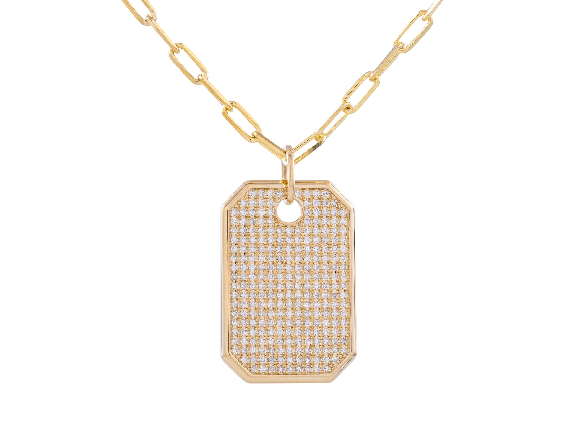 14k yellow gold rectangular diamond pendant on a paperclip chain